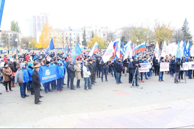 4 ноября на Советской площади Воронежа состоялся традиционный митинг-концерт, приуроченный ко Дню народного единства. На праздничное мероприятие прибывали поодиночке и целыми коллективами, дружными компаниями и семьями, с детьми, бабушками и дедушками. К началу акции, которая стартовала в 11 часов, у здания Воронежского городского концертного зала собралось около шести тысяч человек. На митинг пришли как первые лица региона и города, так и представители трудовых коллективов, профсоюзов, общественных организаций, партий, молодежных объединений, депутатского корпуса. Так же данное мероприятие посетили студенты ВИВТ и волонтеры Центр гражданской взаимопомощи в Воронеже Открыли митинг минутой молчания, почтив память погибших в авиакатастрофе самолета «Airbus-321» рейса 9268 «Шарм-эль-Шейх – Санкт-Петербург». Жители региона вышли на митинг с разными лозунгами, но один стал объединяющим - «Мы вместе». Об этом же говорили и выступавшие со сцены известные в Воронеже люди. К собравшимся на площади обратились представители национальных общин, Молодежного парламента, Общественной палаты, духовенства. Все выступающие говорили о том, что в единстве народа и его верности своим традициям - наша сила и уверенность в завтрашнем дне. Руководитель ВРОО «Молодое Черноземье» Валерий Черников, поздравив присутствующих с праздником, отметил, что этот день объединил людей разных народностей, занятий, возрастов. «Мы чувствуем себя единым народом, сильным, самодостаточным государством. Это дает нам уверенность в будущем дне, в том, что нашу страну победить невозможно», - подчеркнул Валерий Черников. А член Молодежного парламента Воронежской области Алина Базарова отметила: «Мы все – разные, у нас у каждого есть свои взгляды. Но мы должны понимать, что единство нашей страны – это залог нашего будущего». Проректор Воронежского государственного университета, сопредседатель регионального отделения Общероссийского Народного Фронта Василий Попов предложил не забывать о своей истории. «Всех нас объединяют чувства гордости за свою страну, за ее славную историю и свершения многих наших предков. Современная Россия сильна прежде всего благодаря огромному потенциалу людей, искренне желающих принести пользу своему Отечеств. А наш единый многонациональный народ является главной его опорой», - подчеркнул Василий Попов. Официальные поздравления чередовались с выступлениями творческих коллективов Воронежа. Собравшуюся на Советской площади многотысячную публику приветствовали артисты Воронежской филармонии, казаки, ведомственные коллективы.